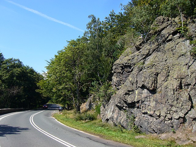 W pobliżu zakrętu, na zalesionych wzgórzach znajduje się wiele wartych zobaczenia skał oraz punkt widokowy, również tutaj zaczyna się kilka sudeckich szlaków turystycznych.